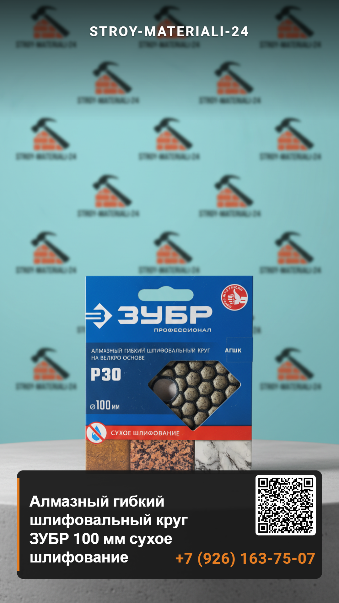 Гибкий алмазный шлифовальный круг ЗУБР 100 мм идеально подходит для сухого шлифования сложных поверхностей! Он обеспечивает ровное и чистовое качество обработки благодаря уникальной структуре абразива. Быстрое достижение нужного результата без лишних усилий — залог вашего успеха! Удобство использования, высокая точность и долговечность инструмента позволят вам наслаждаться работой над проектами любого уровня сложности. Подходит для металла, камня и керамики – ваш идеальный помощник дома и на производстве!