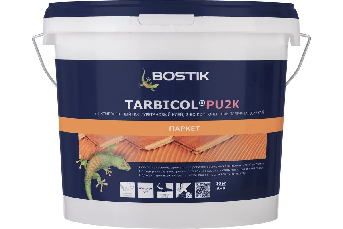 - Bostik TARBICOL PU 2K 10 кг подходит для всех типов паркета.