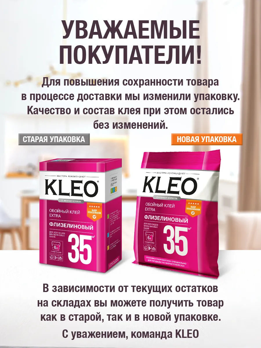 Откройте для себя профессиональный подход к ремонту с KLEO EXTRA – идеальным выбором для флизелиновых и виниловых обоев на флизелиновой основе. Наш клей гарантирует надежное сцепление, экономичен в использовании и прост в приготовлении. С Kleo Extra ваш ремонт пройдет идеально – выберите уверенность и качество уже сегодня!